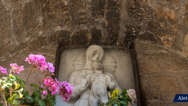 Ogni giorno al tramonto si recava qui per pregare, con una breve processione con i bambini del quartiere, tra cui la figlia Natalina. A ogni bambino era affidato un compito: portare l’acqua, i fiori, le candele e anche un inginocchiatoio. Dopo la preghiera si faceva rientro a casa e la sora Maria regalava a ogni coppia di bambini una bottiglietta di aranciata da condividere. Arriviamo al dopoguerra e una sera, quando la piccola processione arriva al Ponte, trova la stampa della Madonna buttata a terra e al suo posto una statua in gesso della Madonna, quella visibile ancora oggi, sebbene deturpata in seguito ad atti vandalici. “Ah rega’, questa non è la Madonna nostra. A casa!” pare abbia sentenziato la sora Maria.