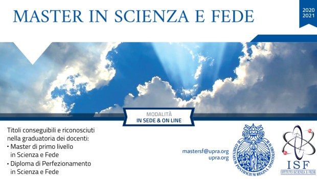 L’Istituto Scienza e Fede dell’Ateneo Pontificio “Regina Apostolorum” offre la diciannovesima edizione del Master in Scienza e Fede, il quale forma parte del Progetto STOQ (Science, Theology and the Ontological Quest), sotto gli auspici del Pontificio Consiglio della Cultura e in collaborazione con altre università pontificie di Roma e con le facoltà di Teologia, Filosofia e Bioetica dell’Ateneo.