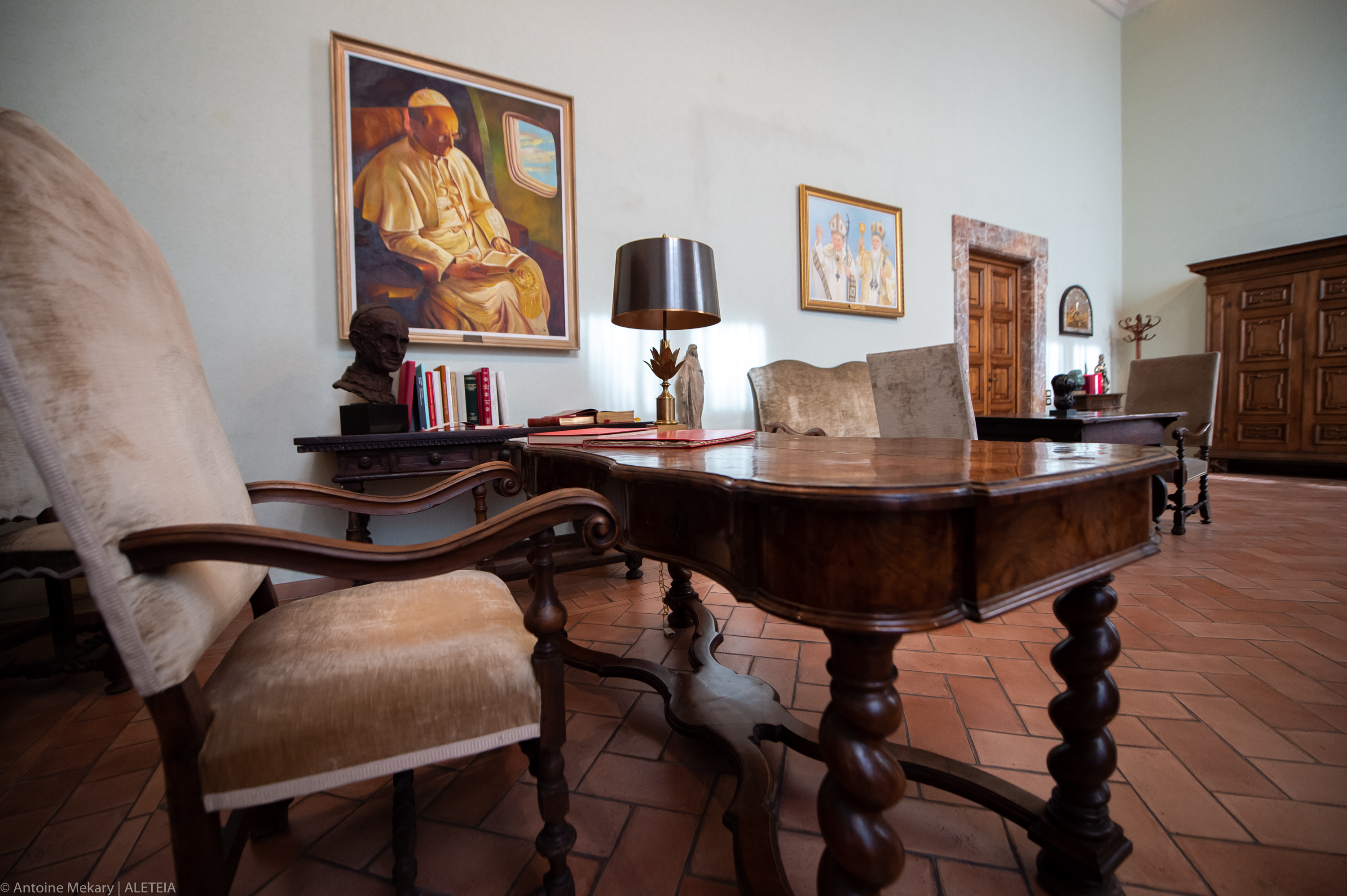 Nei pochi quadri esposti alle pareti, riconosciamo le silhouettes degli antichi occupanti dei locali: Paolo VI, Giovanni Paolo II o anche Giovanni XXIII. Quest'ultimo era probabilmente il più attaccato al luogo, visto che aveva espresso il desiderio di essere sepolto nella sua cappella privata per attaccamento alla sua diocesi, ma alla fine ha dovuto optare per la necropoli papale nella basilica di San Pietro.
