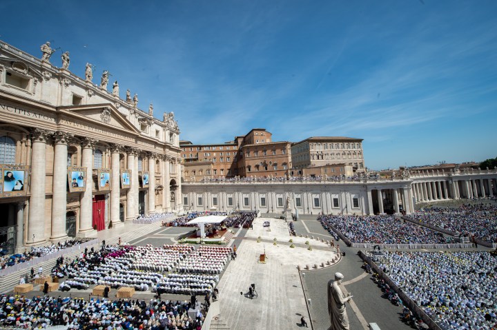 Sul sagrato della Basilica di San Pietro, in una mattinata piena di sole, Papa Francesco presiede la celebrazione eucaristica e il rito della canonizzazione di dieci beati. Di ciascuno, il cardinale Marcello Semeraro, prefetto della Congregazione delle cause dei santi, presenta un breve profilo. Sono: Titus Brandsma, Lazzaro detto Devasahayam, César de Bus, Luigi Maria Palazzolo, Giustino Maria Russolillo, Charles de Foucauld, Marie Rivier, Maria Francesca di Gesù Rubatto, Maria di Gesù Santocanale e Maria Domenica Mantovani. In 50 mila da tante nazioni e continenti sono arrivati a Roma per festeggiarli - numerosissimi i consacrati, le consacrate e i sacerdoti -, e ogni nome è salutato da un caloroso applauso. In Piazza è presente il presidente della Repubblica italiana, Sergio Mattarella.
