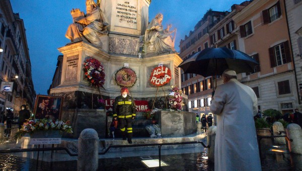 Il Papa in Piazza di Spagna ai piedi dell’Immacolata in preghiera per chi soffre