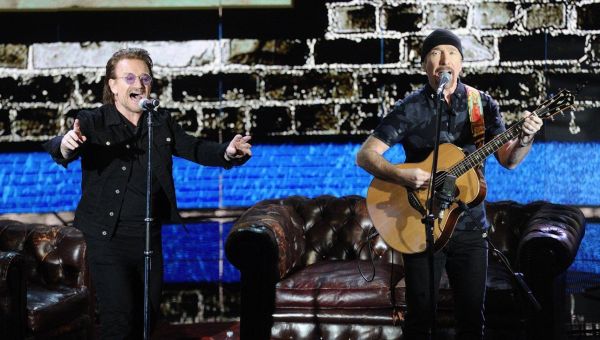 L’esibizione degli U2 alla raccolta di beneficenza per i senza tetto di Dublino